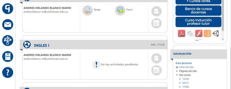 Actualmente como tutor/director de curso en la UNAD tengo a mi cargo cursos totalmente virtuales, usando la plataforma Moodle.
